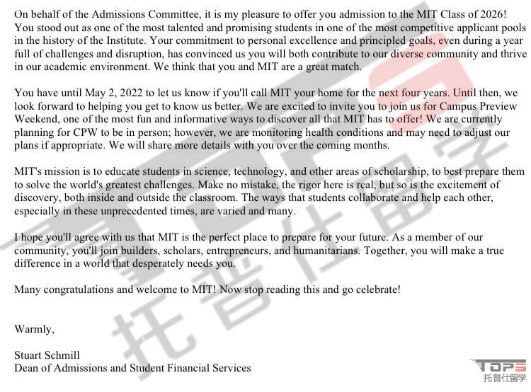 (1)语言要求:IELTS:一般要求7.0以上,部分专业仅要求6.5,部分专业要求7.5以上,无单项要求;TOEFL:最低要求90分以上,一般要求100分,无单项要求。MIT更倾向于接受雅思成绩。