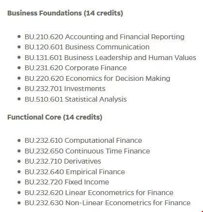 JHU金融硕士项目需要完成36个学分。具体课程如下: