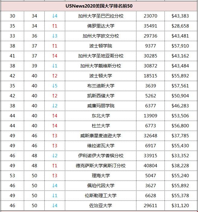 佩珀代因大学(50)和佐治亚大学(50),去年首进TOP50,排名46,今年落到50
