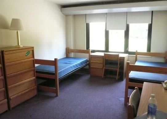 双人间是美国大学的标配,也是最多的宿舍类型,双人间床和桌子位置可以自己摆弄,有的有独立卫生间,有的没有,具体要看学校,费用大概每月1000美元,这个样子。