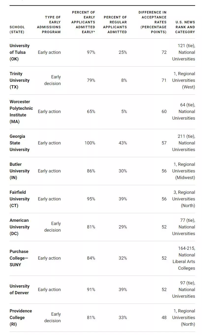 USNews日前就根据2018年度美国各高校的申请数据,筛选出了通过EA/ED申请可能更占优势的10所美国大学