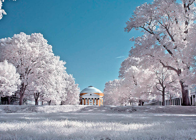 弗吉尼亚大学所在的小镇,常年各项北美最宜居城镇评比上的常客,气候宜人,比东北暖和,比弗罗里达凉快,东有美东最好的海滩之一,西有蓝脊山(Blue Ridge Mountain)和雪兰朵山谷(Shenandoah Valley),江湖成群,绿荫繁蔽,作为一所大学城,称其附近景色冠居全美,并不夸张。学生们最喜欢的事情莫过于周末去蓝脊山爬爬山,或者去附近酒庄喝喝酒。