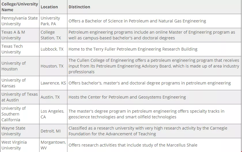 每年大约有2000名学生获得石油工程学士学位,职业中期平均薪资为$ 170782。