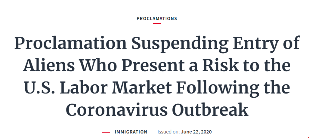 美国时间 6 月 22 日,白宫发布禁止持有 H-1B 、H-2B、部分 J 签证和 L 签证的持有者及随同入境的非美国籍人进入美国,新一轮的禁令开始,下面托普仕Alice老师为大家解读。
