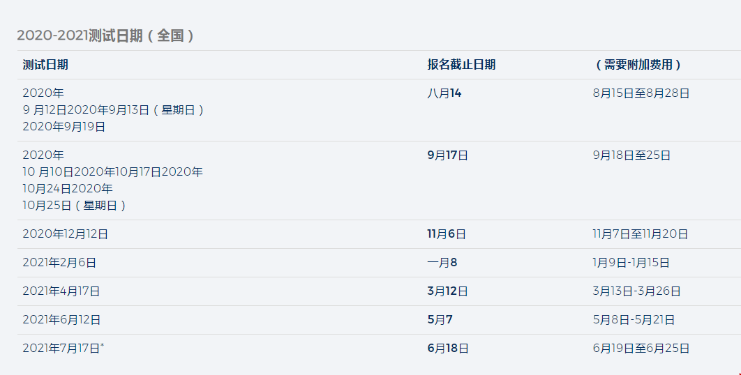 受夏季考试日期取消和关闭影响的2021毕节的学生:我们正在努力提供秋季考试注册体验,以帮助你满足大学申请和奖学金的截止日期。你将在本周收到一封来自我们的电子邮件,内容涉及后续步骤。