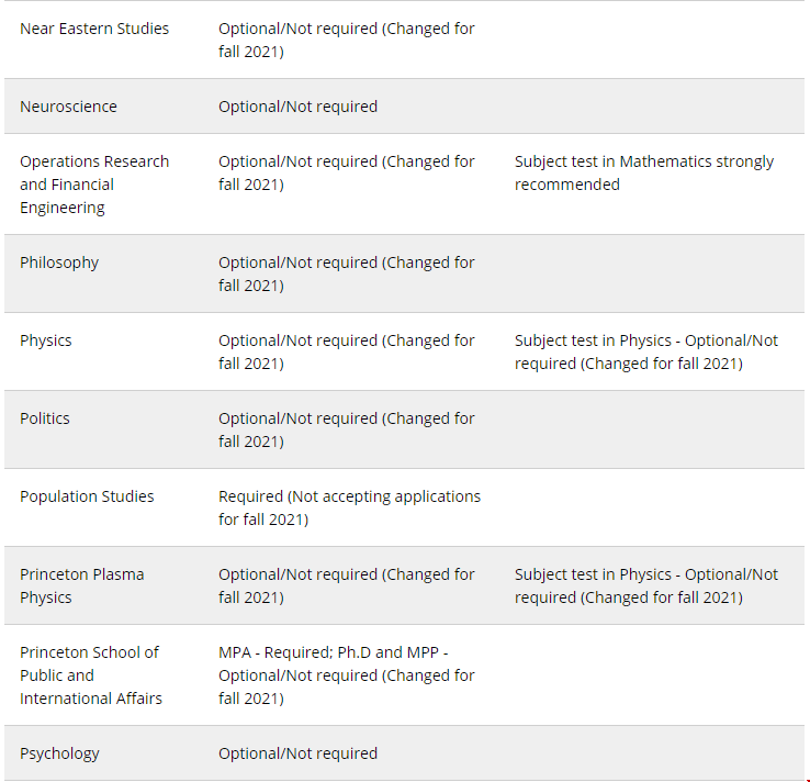 1. 普林斯顿大学研究生院除了个别项目不免GRE/GMAT,其他项目均可免除!