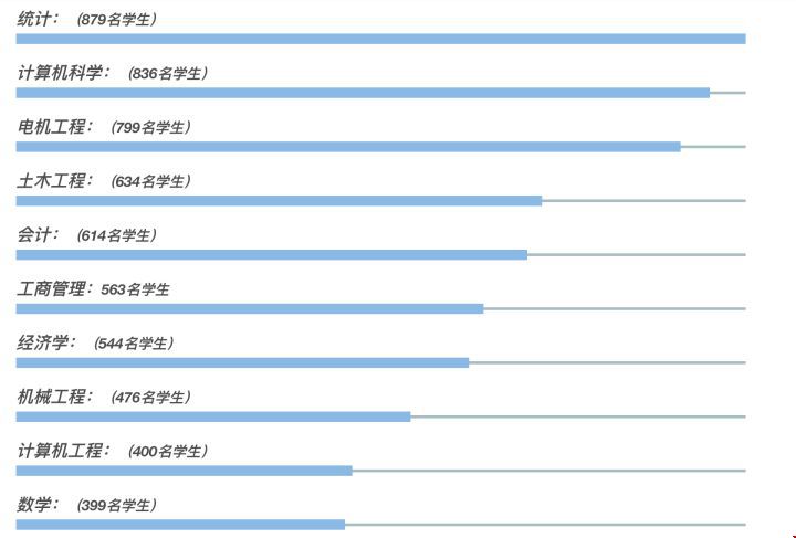从图可以看到:伊利诺伊大学厄巴纳香槟分校最受中国学生欢迎的专业是统计学,计算机科学和电气工程