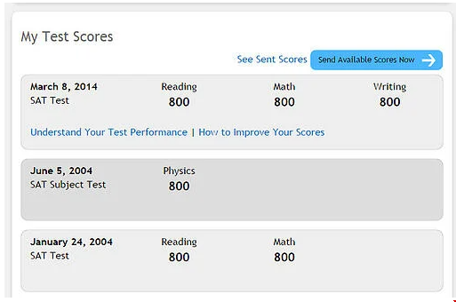 看下面的图,SAT满分的成绩单:
