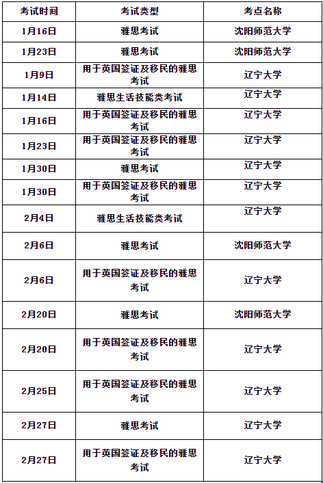 2.取消辽宁大学和沈阳师范大学雅思考点2021年1月和2月雅思考试