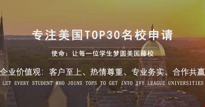 托普仕留学是一家致力于让国内孩子梦圆美国藤校的高端留学中介,同时也秉承“客户至上、合作共赢、热情尊重、专业务实”的价值观,从客户视角出发,通过全方位的专业评估,打造专属一个人的个性化方案;五年以上的师资配置,以”专业“的眼光去看待每一份客户的申请;尊重客户的每个高分背后的努力,互相尊重;一步一个脚印,陪同式指导,让客户的每一步都走的安心。