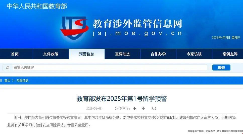 昨日,美国俄亥俄州一项针对中美高校合作的新法案引发震动,教育部紧急发布留学预警:“近期赴美需谨慎评估风险。” 那么,想要申请美国留学的同学,一定要看完这篇2025年美国留学如何规避风险?