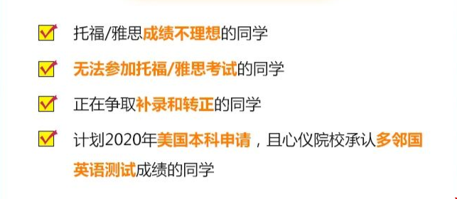 好消息是!近期越来越多大学开始认可Duolingo English Test,其中包括哥伦比亚大学、耶鲁大学、芝加哥大学、杜克大学、南加州大学等知名的美国名校。各位同学不妨了解一下,为未来申请增加一份砝码。