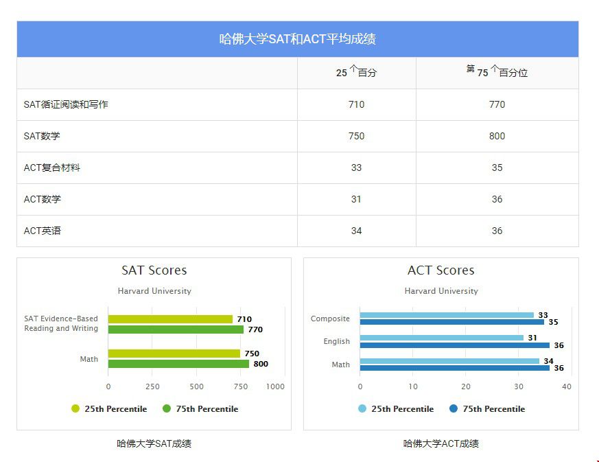 哈佛大学录取SAT和ACT平均成绩