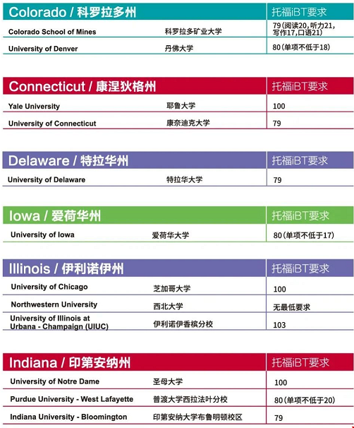 2、美国科罗拉多地区大学托福分数在79-80区间,基于最低水平要求,但是都对单项分数有要求。