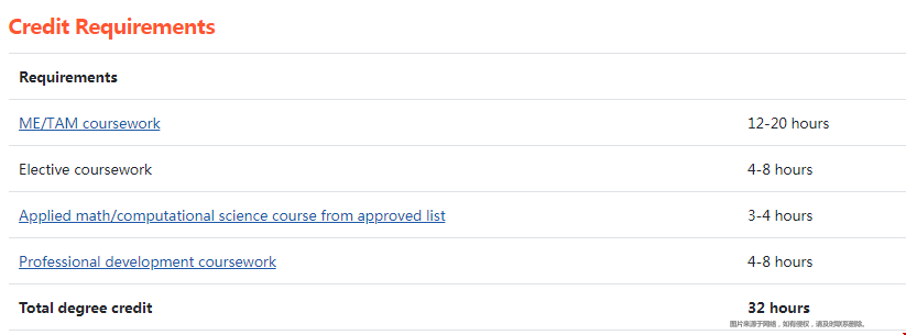 ME 计划以课程为基础,面向行业,并且可以完全定制以满足个人的需求,只要满足学位要求。为那些想要在机械工程中追求以下领域之一的人提供三个建议课程作为指导:设计、活力、控制与制造,合计学分需要达到32个。
