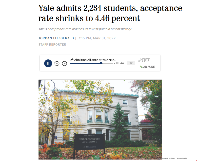 耶鲁大学2026届整体录取率4.46%|又创新低
