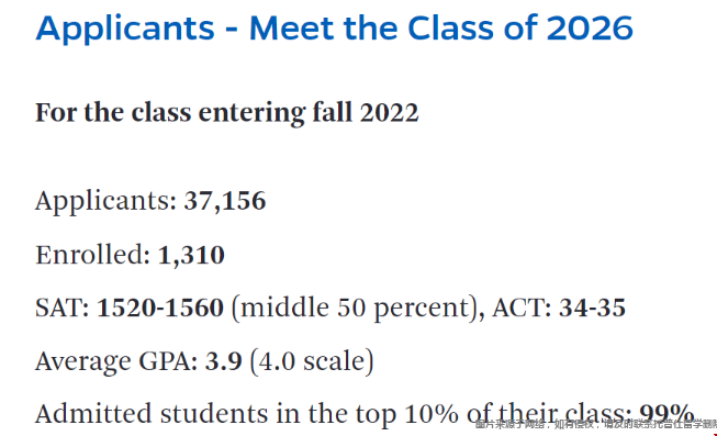 共有37,156人申请JHU,比去年增加11.8%,RD录取1586人,ED1录取520人,ED2录取302人,本申请季共录取2408人,整体录取率6.5%,其中RD常规录取率为5%,录取率再创新低(去年为7.5%)。