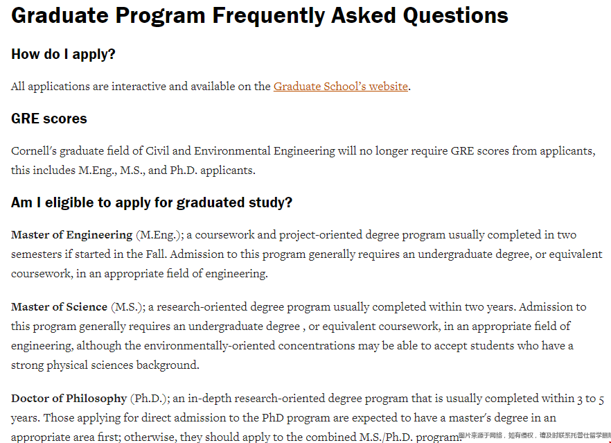 康奈尔大学土木与环境工程硕士入学要求有哪些?首先得具有认可的学位或同等学历,当然不同学位对应的学位背景要求是不一样的;另外,所有国际申请者必须证明其英语水平,雅思总分最低为7.0分,托福各个单项单项的分数也是有要求的。接下来具体跟随托普仕Zoe老师一起来看看吧!