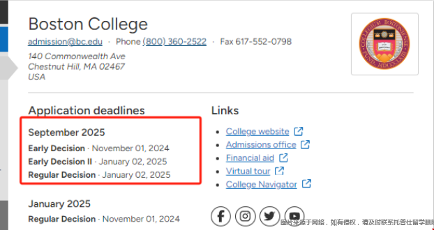 波士顿学院提供春秋两个学期入学,所以不同入学时间给出的申请截止时间也有差异,其中1月春季入学,普遍截止时间在12月中旬,9月入学的话,提供早申和常规录取,所以最晚截止1月上旬,下面就随托普仕留学老师一起来详细看看25fall最新波士顿学院申请截止时间吧!