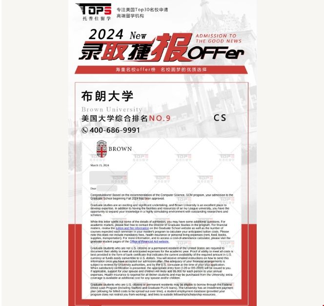近日,托普仕四位学子斩获老牌藤校布朗大学CS项目录取,有首战告捷的愉悦,也有梦圆初心的欢喜,还有多枚重磅录取在手的淡然。下面托普仕老师给大家详细介绍一下布朗大学的cs录取情况。
