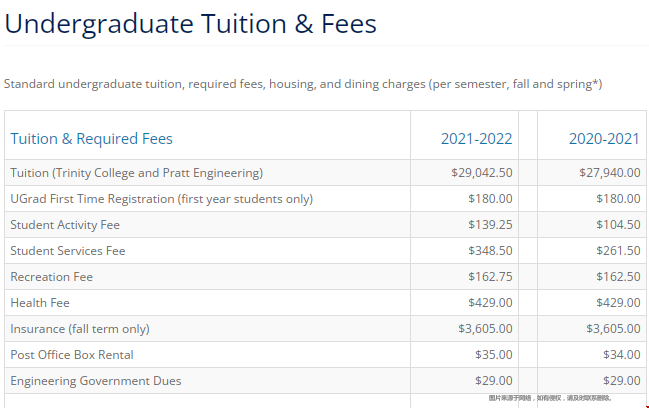 (Trinity College and Pratt Engineering)三一学院和工程学院2021-2022年度学费:$29,042.50(换算人民币18.5万人民币)/学期,一年也就是37万人民币。