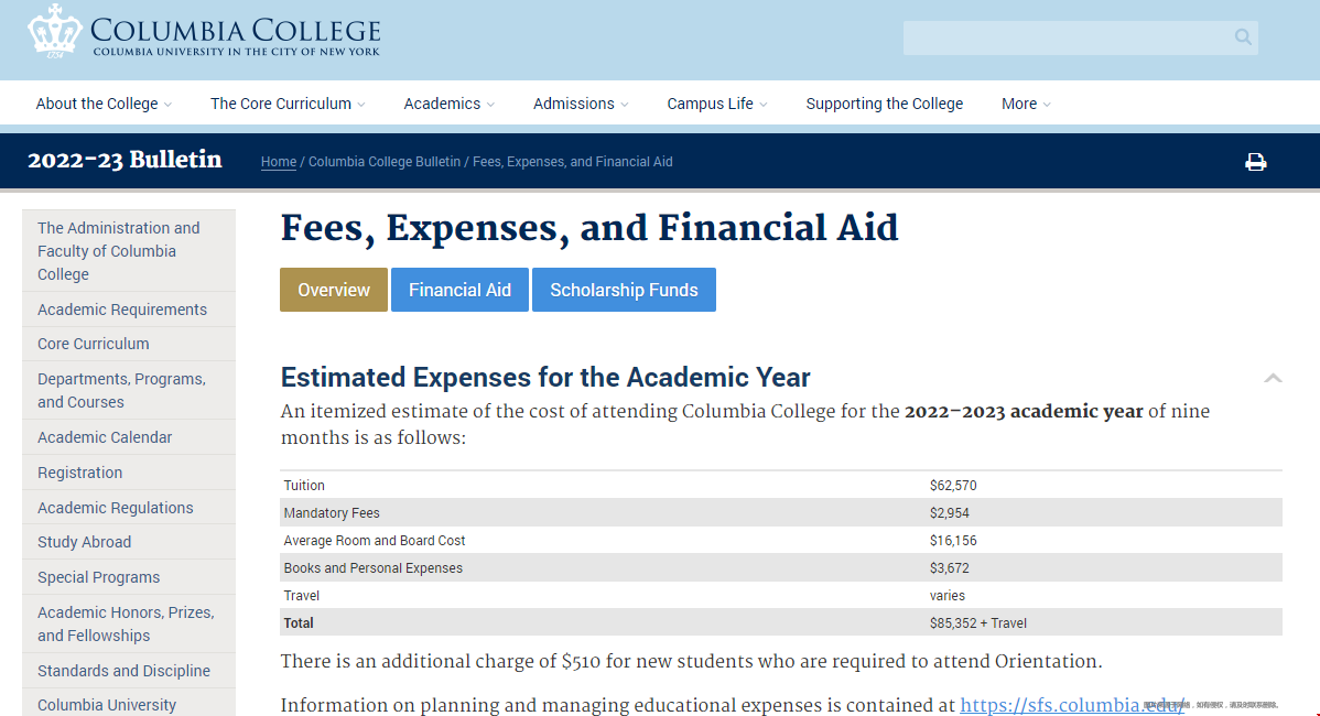 2022-23哥大留学费用包含的种类有很多,如学杂费、宿舍和用餐计划,应在每学期开始前公布的日期前全额支付。