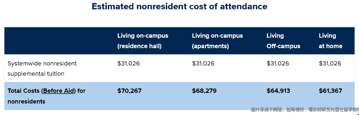 所以国际生预估的总费用为$68,279美元至$70,267美元