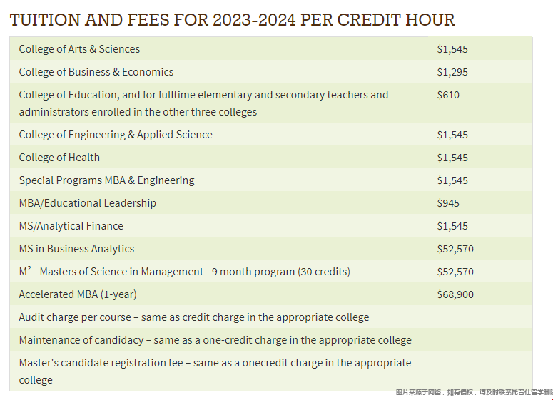 另外,某些课程和专业的学生需额外缴纳790美元的费用(工程和科学费或艺术和科学费)。