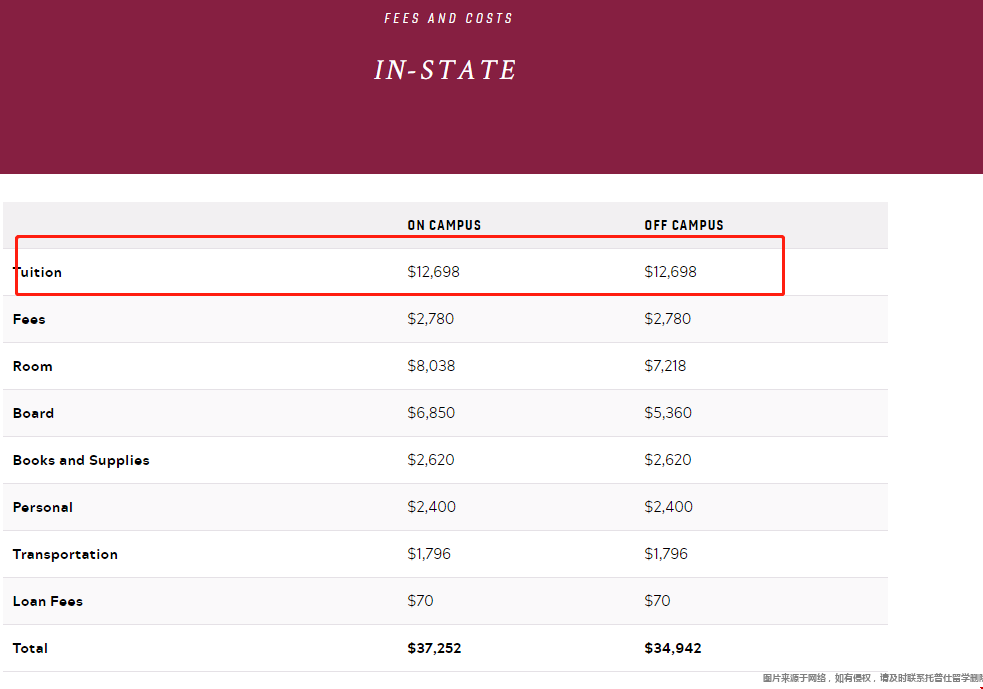 两者对比可以看出来,州外国际生学费是州内学生2-3倍!