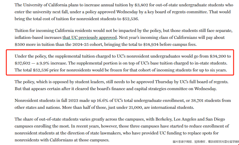 一、加州系明年州外本科新生学费上涨