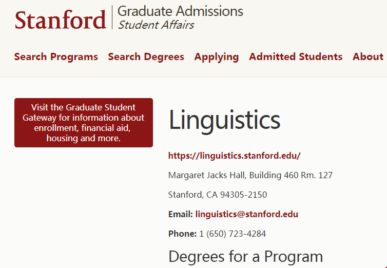 斯坦福大学人文社科学院单独开设语言系,这里提供语言哲学博士,学制5年,在读语言学博士通过完成高级课程和强大的方法和分析培训,同时准备学生对语言学知识做出原创性贡献,期间也会阐明他们的工作结果,并展示其对语言学和相关领域的重要性。在该计划的每个阶段,斯坦福大学都会鼓励学生展示和发表他们的研究,并发展积极的专业形象。