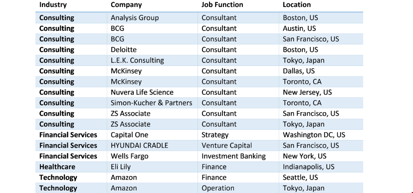 在最终去向中,所有国际生同学选择留在了北美。78.57%的学生的职位来自于on-campus招聘或者一些off-campus MBA leadership program。欲知更多详细信息可拨打热线4006869991,咨询tops留学机构的老师,给你最专业的解答!在行业、职能、位置(国家)三个指标中,2022届同学至少有一项指标发生了变化,有两个以上转变的达到了85.71%。
