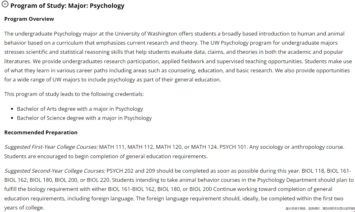二、那么,华盛顿大学心理学本科专业申请需要什么条件呢?