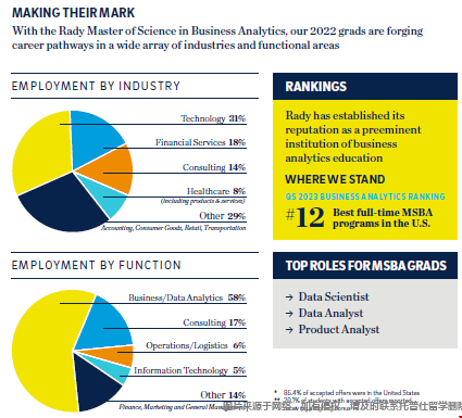 加州大学圣地亚哥分校商业分析硕士2022届毕业生就业数据如下:
