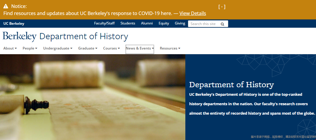 作为加州系第一公立学府,加州大学伯克利分校的历史系是全国顶尖的历史系。