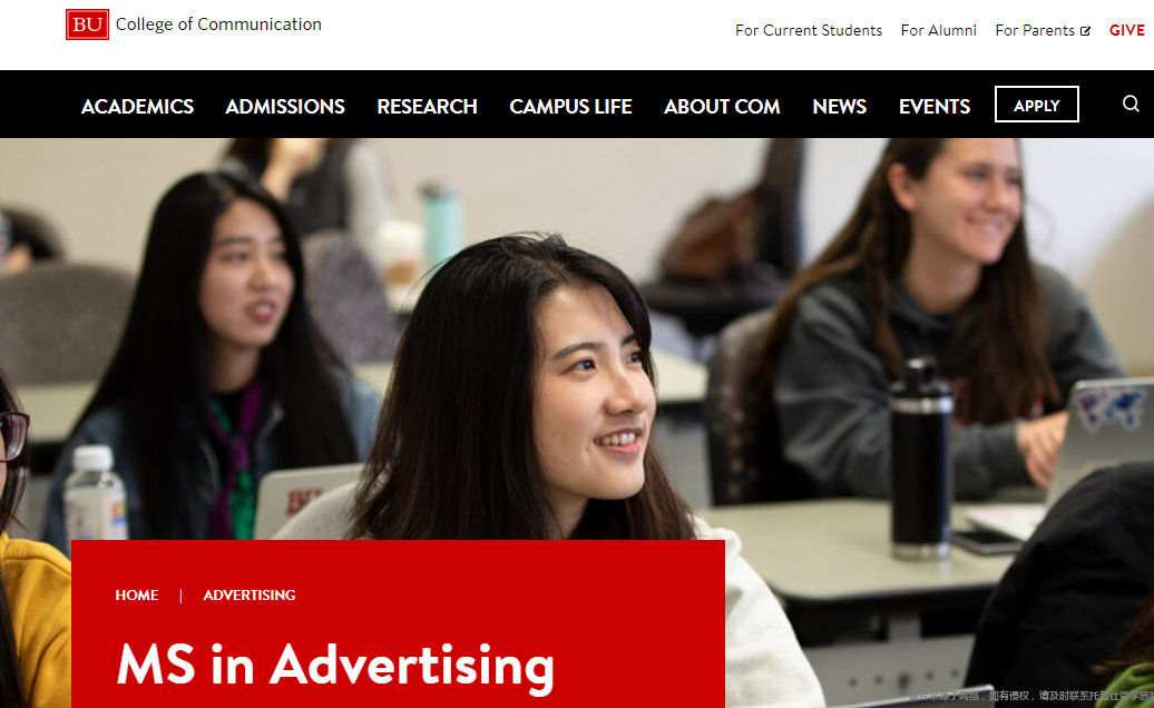 1、位于波士顿大学College of Communication学院下面广告学硕士
