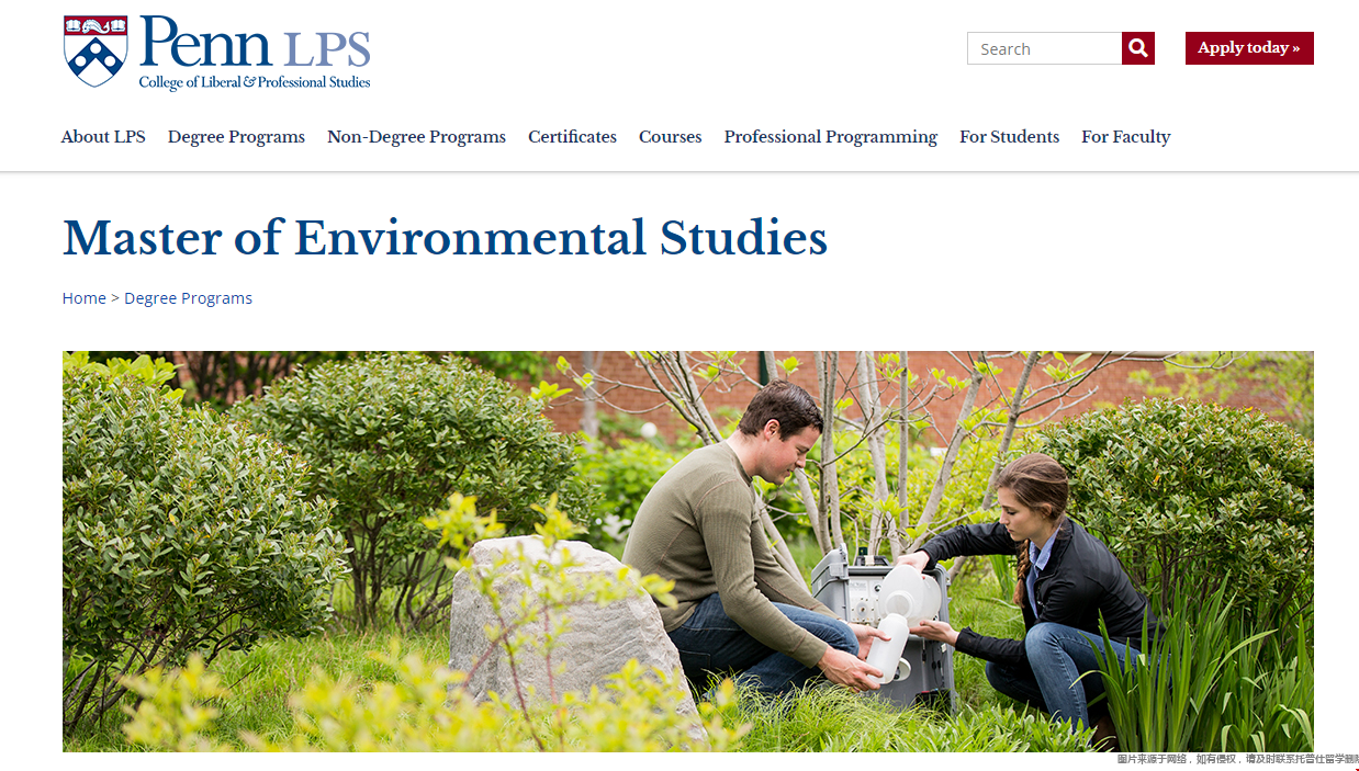 宾夕法尼亚大学环境研究硕士课程为学生提供了了解复杂环境问题所需的知识基础,课程包括: