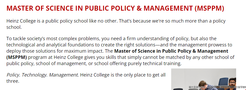 卡耐基梅隆大学MSPPM项目开设在Heinz College学校下,该项目将技术,政策与管理有机的结合,教授学生如何利用数据和技术来分析,制定和实施更有利于社会发展的社会政策。那卡耐基梅隆大学MSPPM项目怎么样呢?下面托普仕留学老师就从学习方向、课程安排和就业前景这三个方面来详细讲解一下。