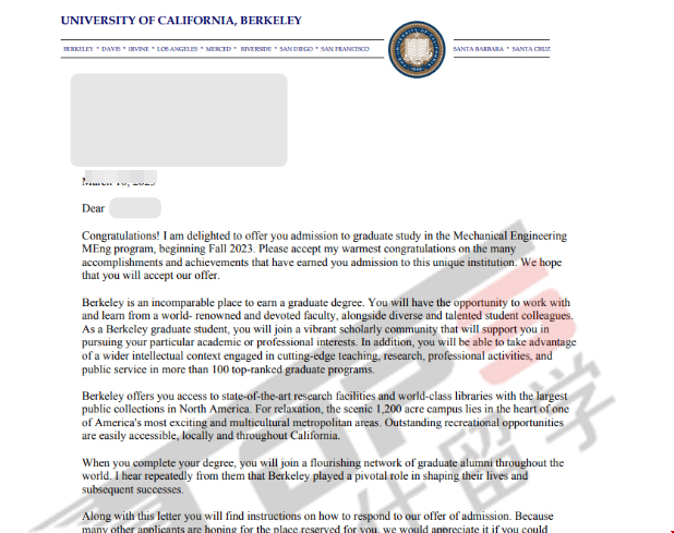 (托普仕留学来自美本学生,绩点3.8成功申到伯克利机械工程项目)