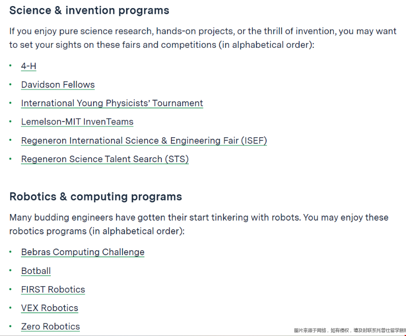 此外,大名鼎鼎的ISEF、STS以及Breakthrough等科研竞赛也在推荐列表中,这些竞赛在学术界具有极高的声誉。