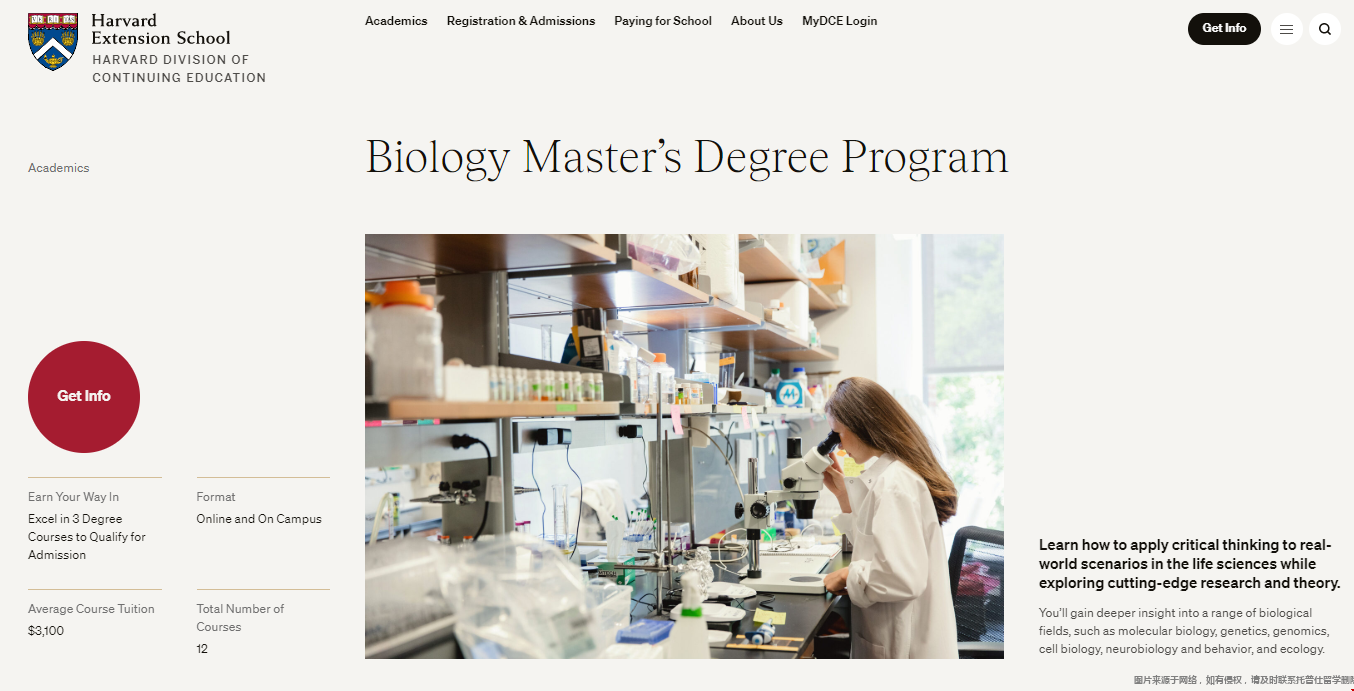 此外,哈佛大学与生物学有关的学科分属医学院、文理学院和综合生命科学等三个学院,项目各有交叉。