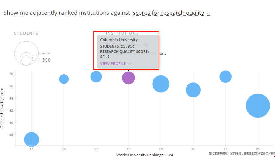 从以上数据可以看出来,哥大虽然排名出现下降,但是研究质量分数赶得上排名靠前的jhu和宾大,更比北京大学要高出几十分,要是对研究感兴趣的人群而言,哥大无疑是一所科研实力强劲的好学校!