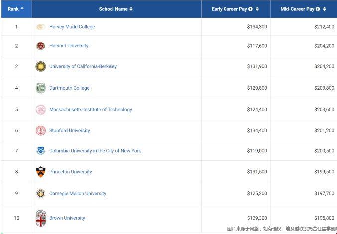在CS领域,收入丰厚的杰出人才不仅来自于哈维穆德学院、麻省理工学院、卡耐基梅隆大学等顶尖理工学府,还涵盖了哈佛大学、加州大学伯克利分校、达特茅斯学院等知名院校的毕业生。具体薪资排名如下: