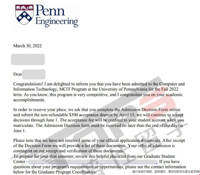 (托普仕留学H同学,美本背景,顺利申到宾大计算机硕士)