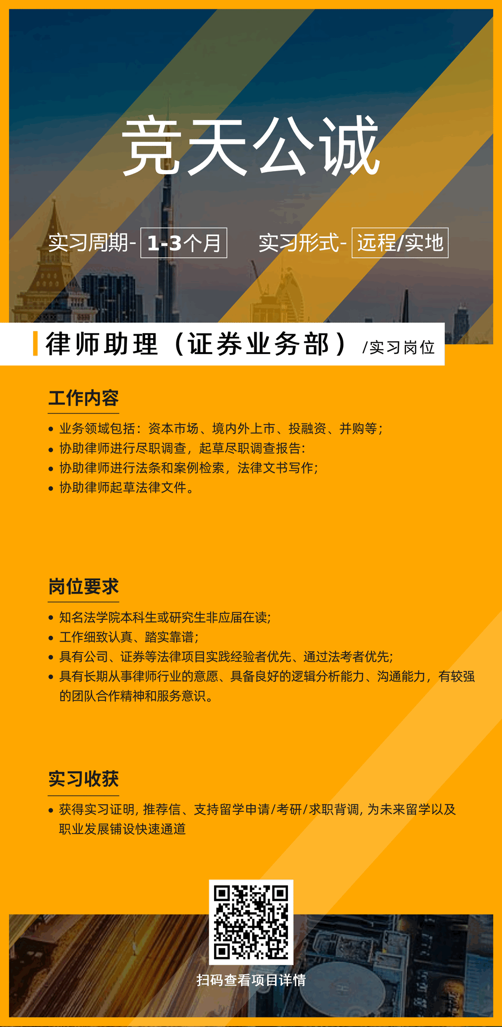 美国留学实习项目:竞天公诚-律师助理(远程/实地:北京/上海)