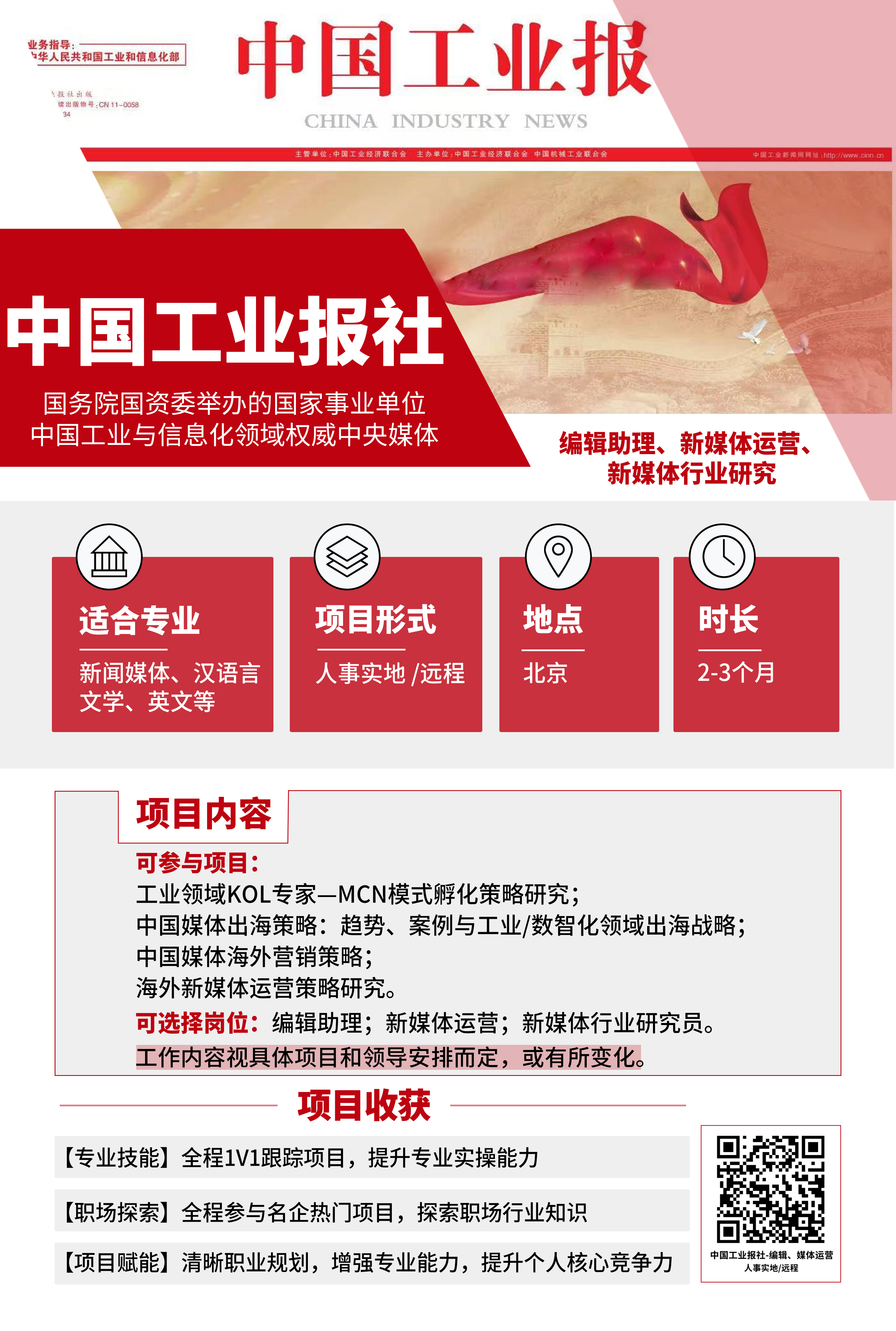 新!中国工业报社2025年实习岗位招聘(地点:北京石景山)